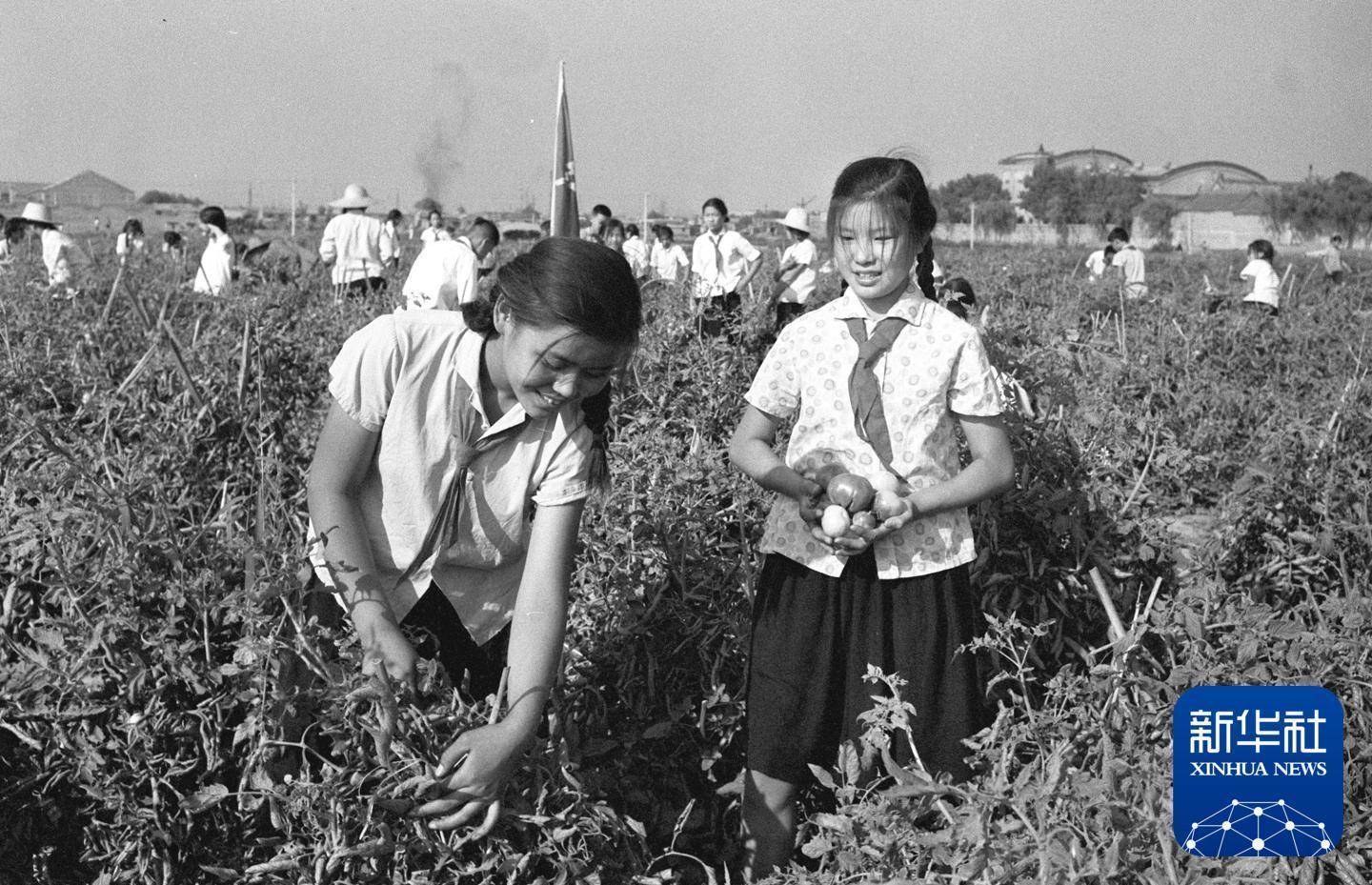 1972年,天津市的小学生们暑期在田里劳动。 新华社发他们通过暑假勤工俭学