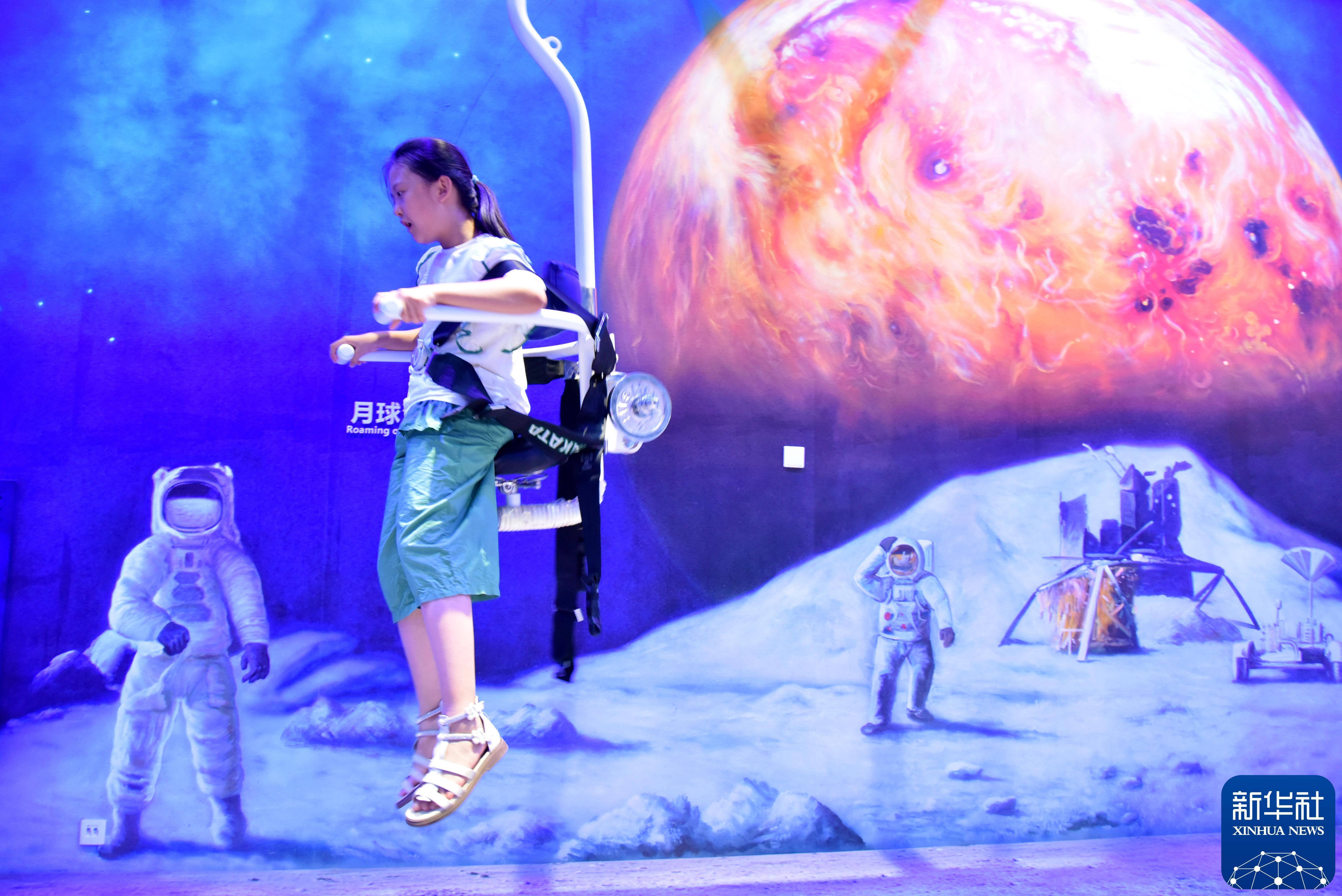 2024年8月24日, 学生在山东省枣庄市科技馆“宇宙探索”厅体验月球漫步。新华社发(刘明祥 摄)走进非遗的世界