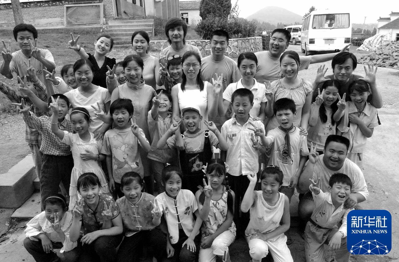 2003年7月3日,在金牛湖希望小学支教的南京师范大学12名学生与小学生们合影。新华社记者 孙参 摄趁着暑假