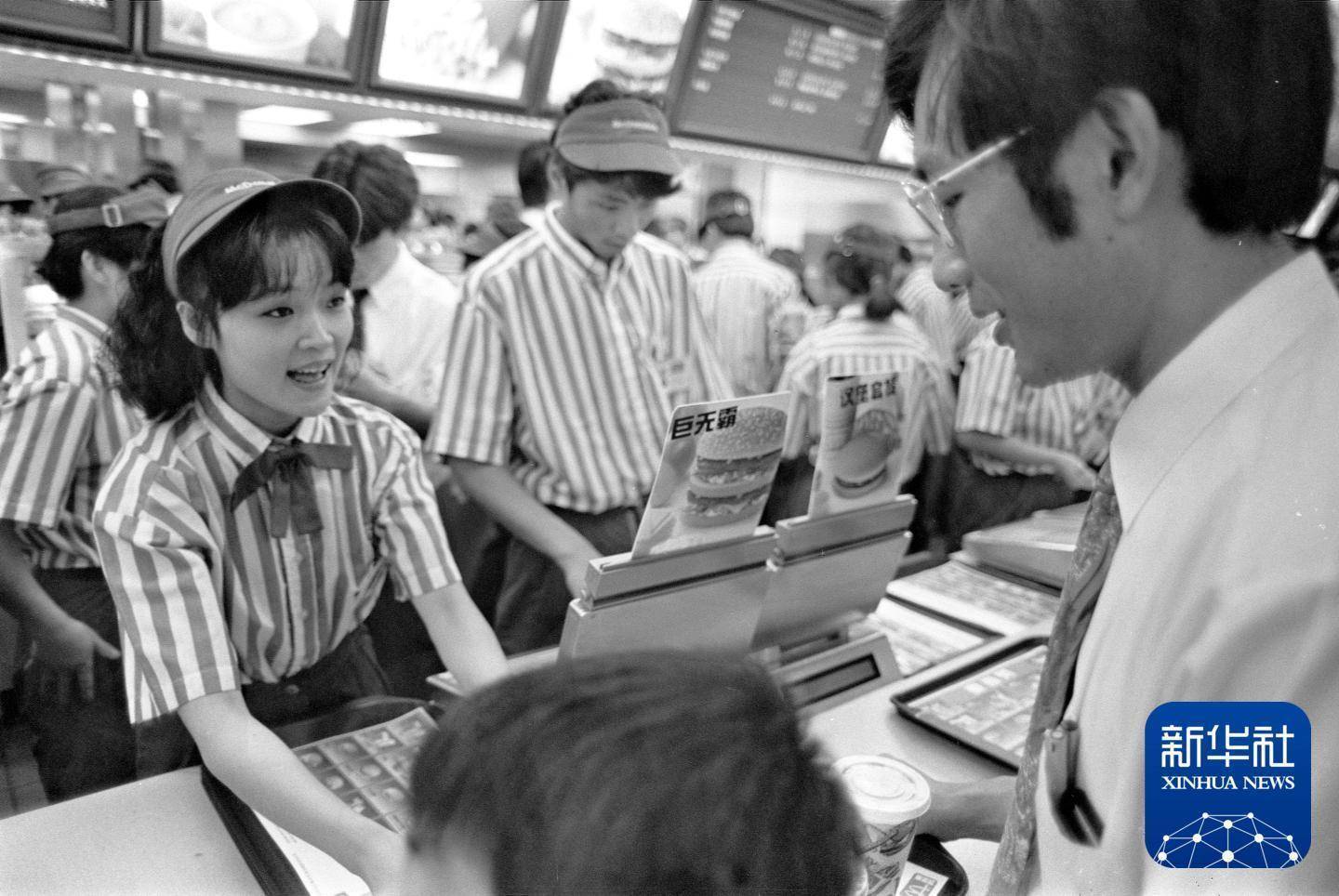 1992年,就读于北京联合大学的一名女学生暑假期间在北京一家快餐店打工。新华社记者 张燕辉 摄