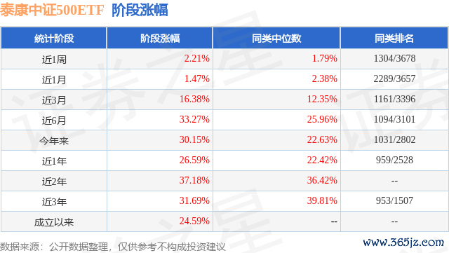 从业绩表现来看,泰康中证500ETF基金过去一年净值涨幅为8.31%,在同类基金中排名1393/2216,同类基金过去一年净值涨幅中位数为11.09%。而基金过去一年的最大回撤为-18.67%,成立以来的最大回撤为-39.98%。