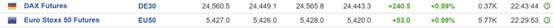 欧洲斯托克50指数期货和德国DAX指数期货均上涨0.99%。